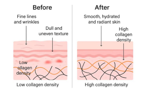 - After: Smooth, hydrated, radiant skin with high collagen density and improved dermal structure